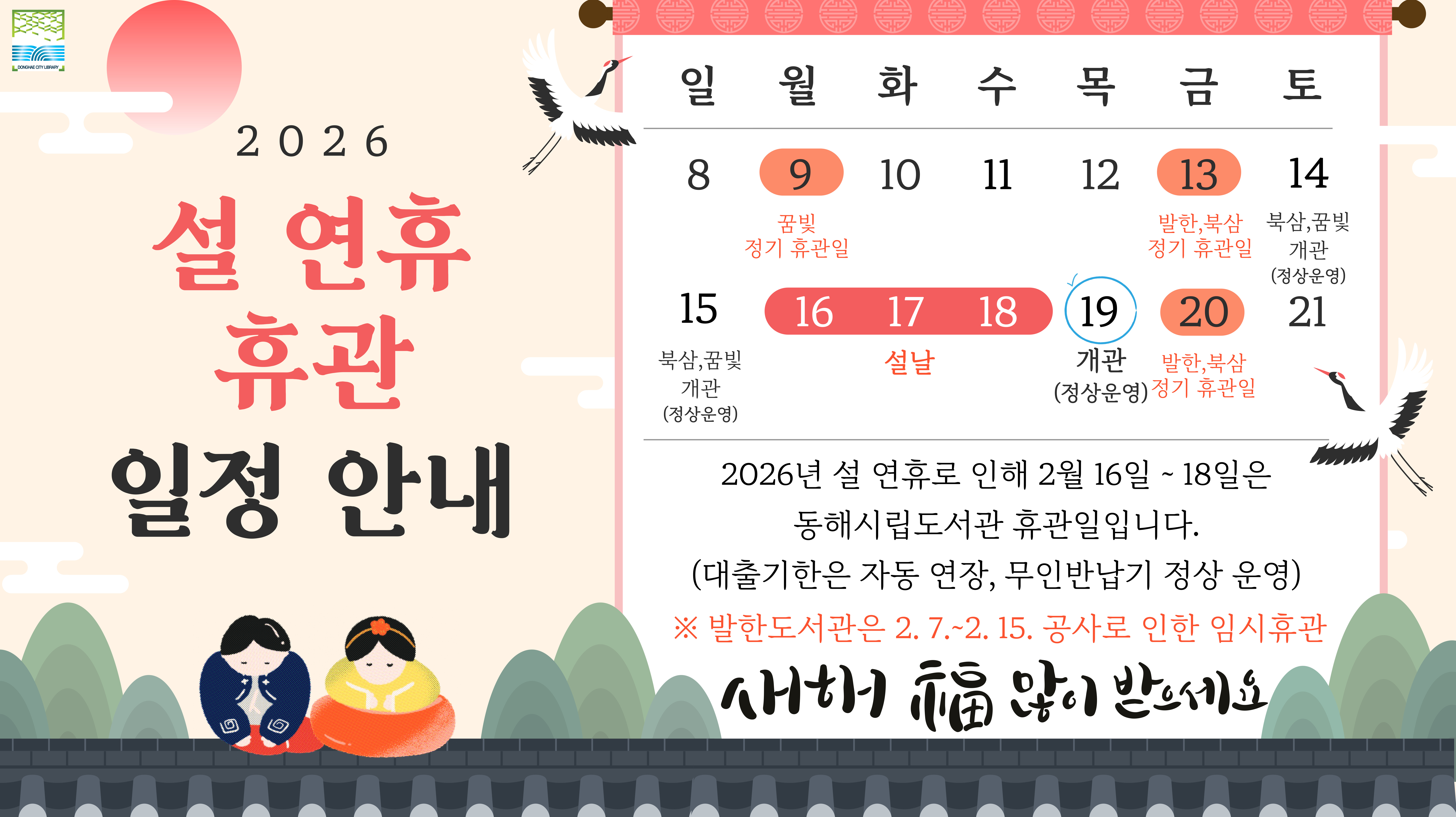 공통 동해시립도서관 설 연휴 휴관안내