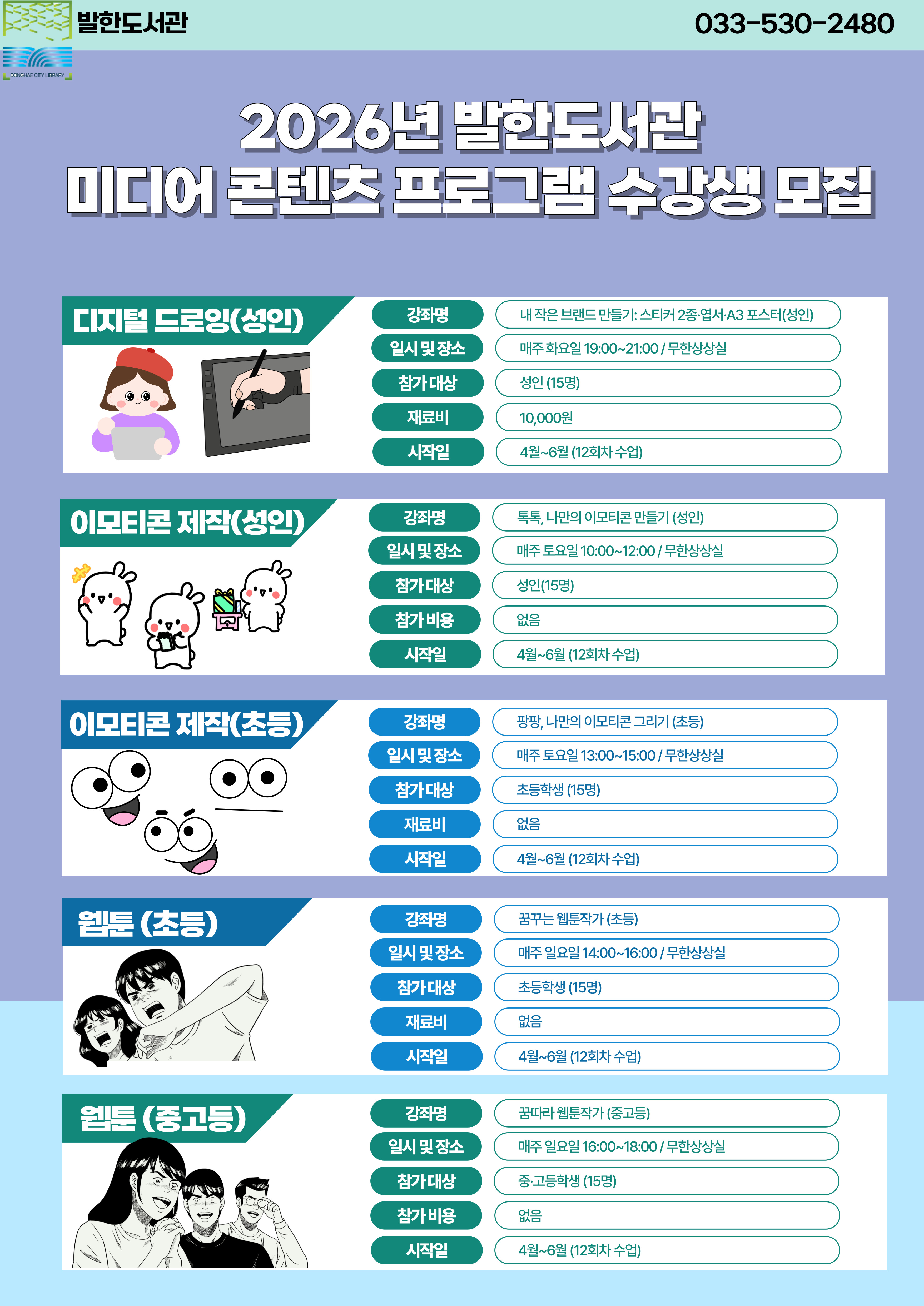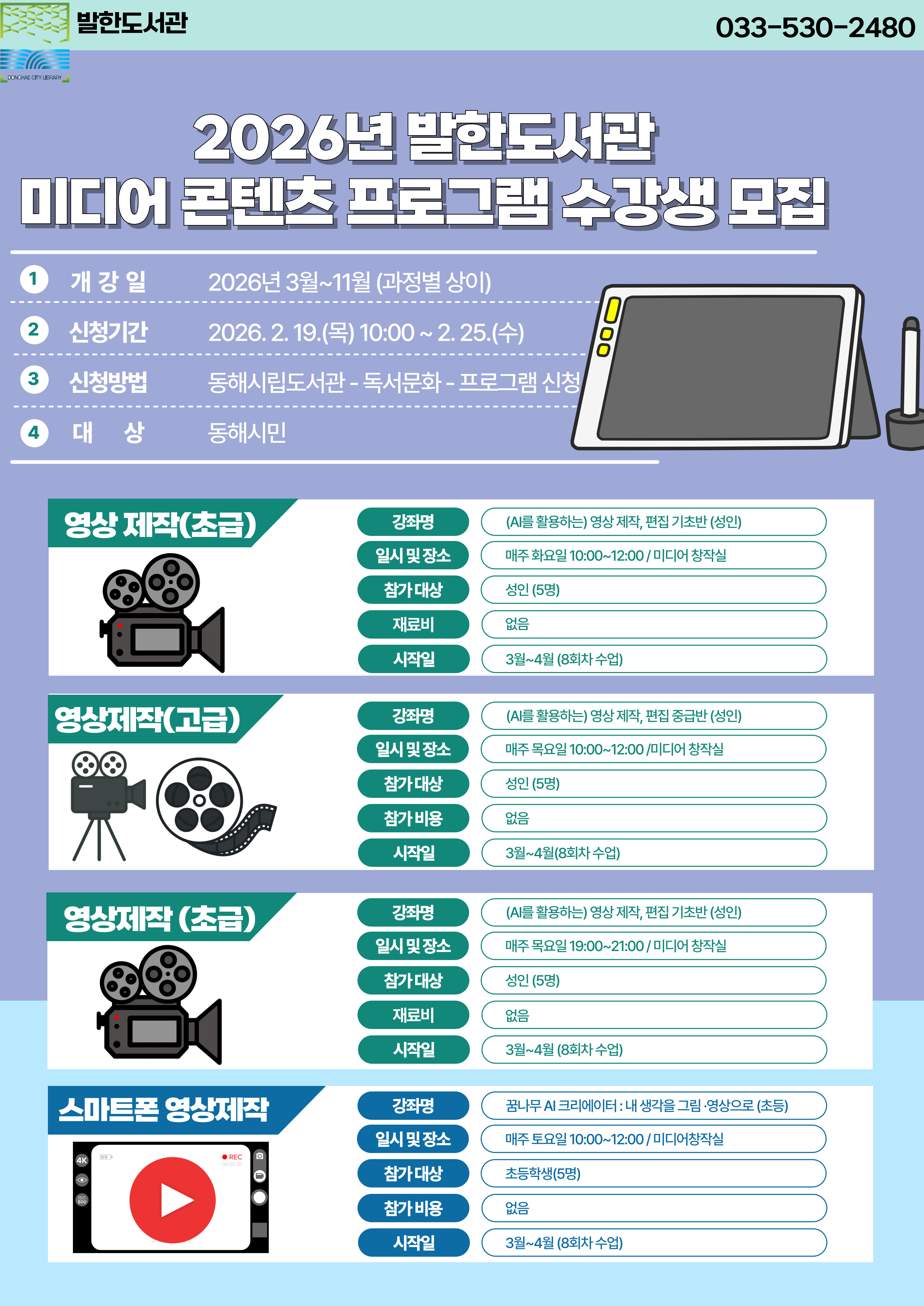 발한 2026년 발한도서관 미디어 콘텐츠 프로그램 수강생 모집