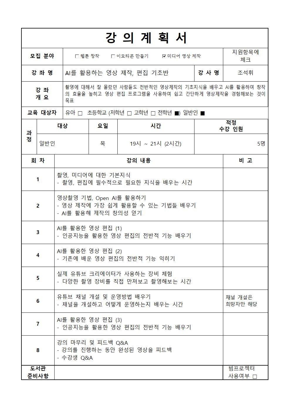 (AI 활용하는) 영상 제작, 편집 기초반 [야간]